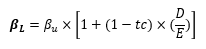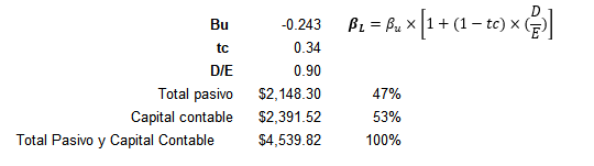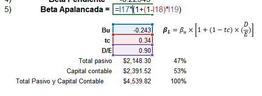Por ultimo hacemos el calculo final para sacar la beta apalancada.