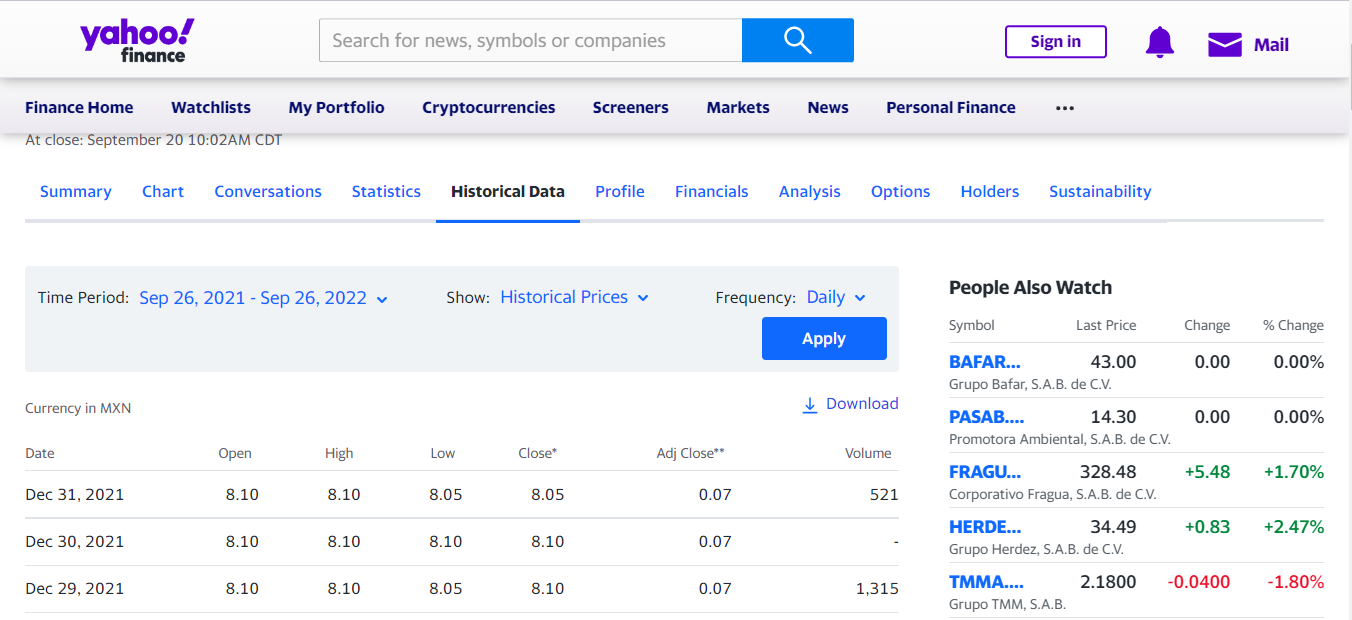 Esta puede ser descargada por medio de yahoo finance, investing, market watch, entre otros.
