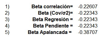 Y una vez tenemos esto ahora podemos proceder a calcular la beta de las 5 formas distintas que hay.
