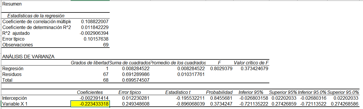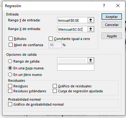 En la variable Y vamos a seleccionar los rendimientos del IPC y en la variable X seleccionaremos los rendimientos de la acción.